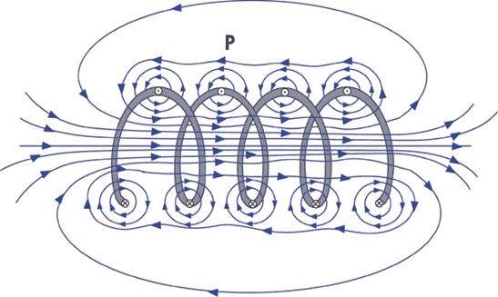 電磁發(fā)動(dòng)機(jī)內(nèi)置了磁鐵,當(dāng)銅線圈通電時(shí),線圈產(chǎn)生與小火箭內(nèi)置磁鐵方向相反的磁場,利用磁性同極相斥的特性,推動(dòng)火箭上升。通電后線圈產(chǎn)生的感應(yīng)磁場如下圖所示。